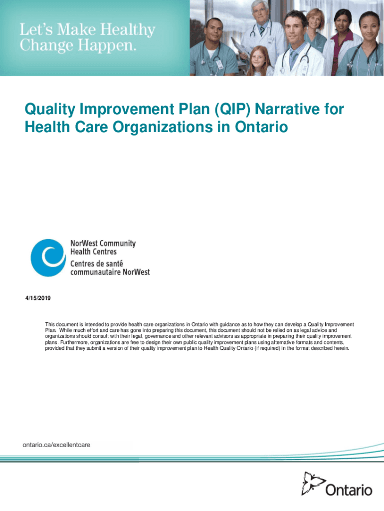 Quality Improvement Plan (QIP) Narrative for Health Care Organizations in Ontario4/15/2019This document is intended to provide health care organizations in Ontario with guidance as to how they can