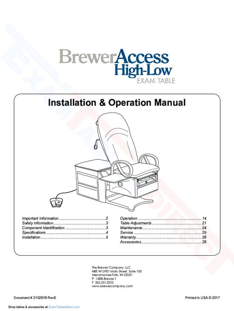 Get the free Brewer 6800 Access High-Low Exam Table Owners Manual. Supplying Physicians with Medi...