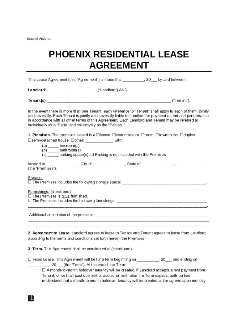 What is PHOENIX RESIDENTIAL LEASE AGREEMENT Form?