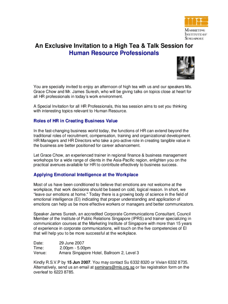 Get the free An Exclusive Invitation to a High Tea.doc - mis org