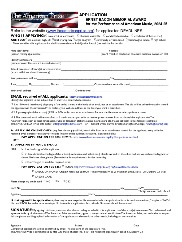 for the Performance of American Music, 202425Refer to the website (www.theamericanprize.org) for application DEADLINES.
