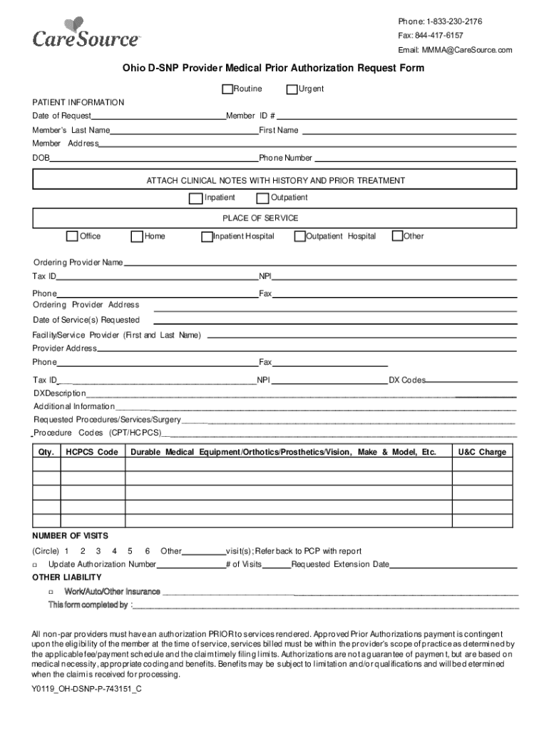 Email: MMMA@CareSource.comOhio DSP Provider Medical Prior Authorization Request Form