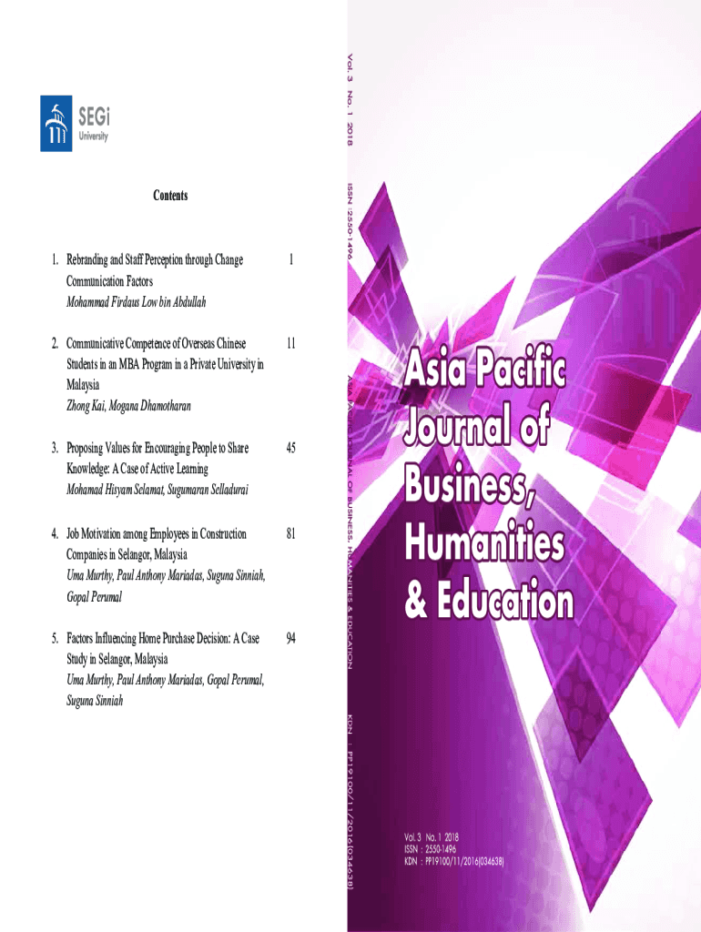Contents1. Rebranding and Staff Perception through Change Communication Factors Mohammad Firdaus Low bin Abdullah12. Communicative Competence of Overseas Chinese Students in an MBA Program in a Private