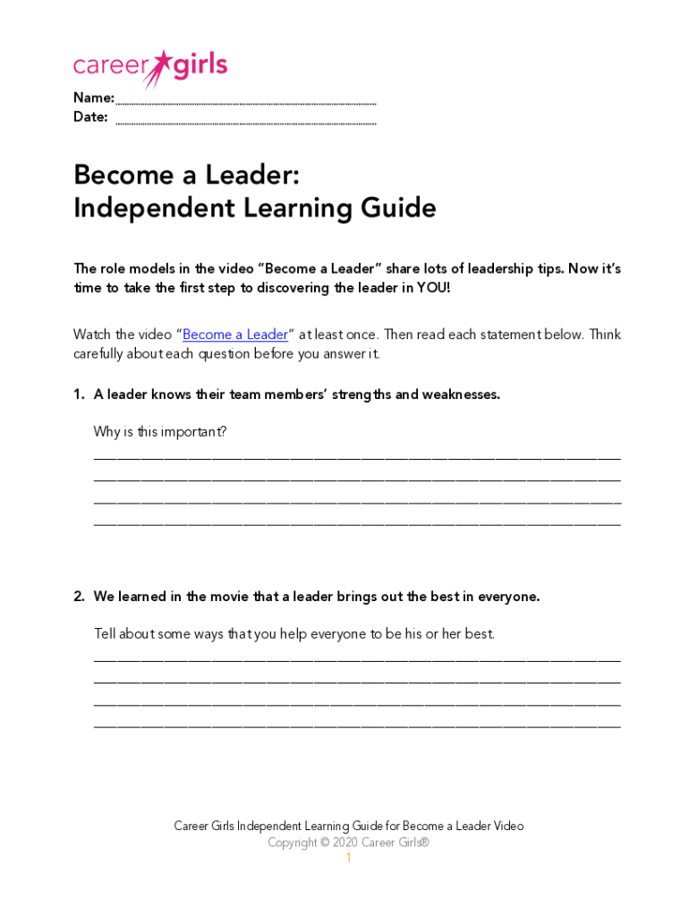 Get the free Become A Leader Empowerment Lesson - Discussion Guide. What are some ways you make a...
