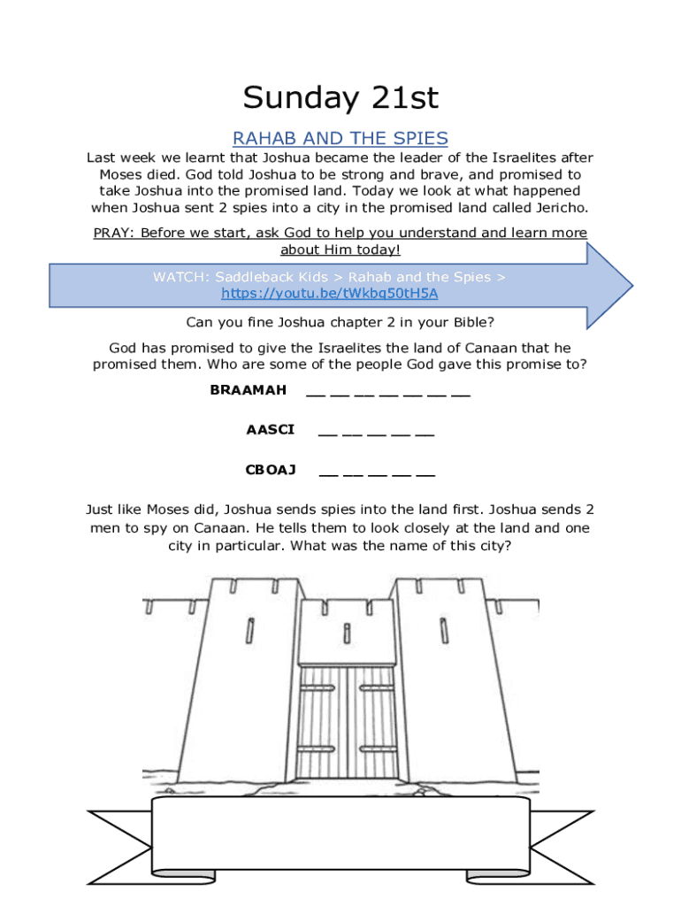 Get the free Rahab and the Spies (Joshua 1-2) Sunday School Lesson