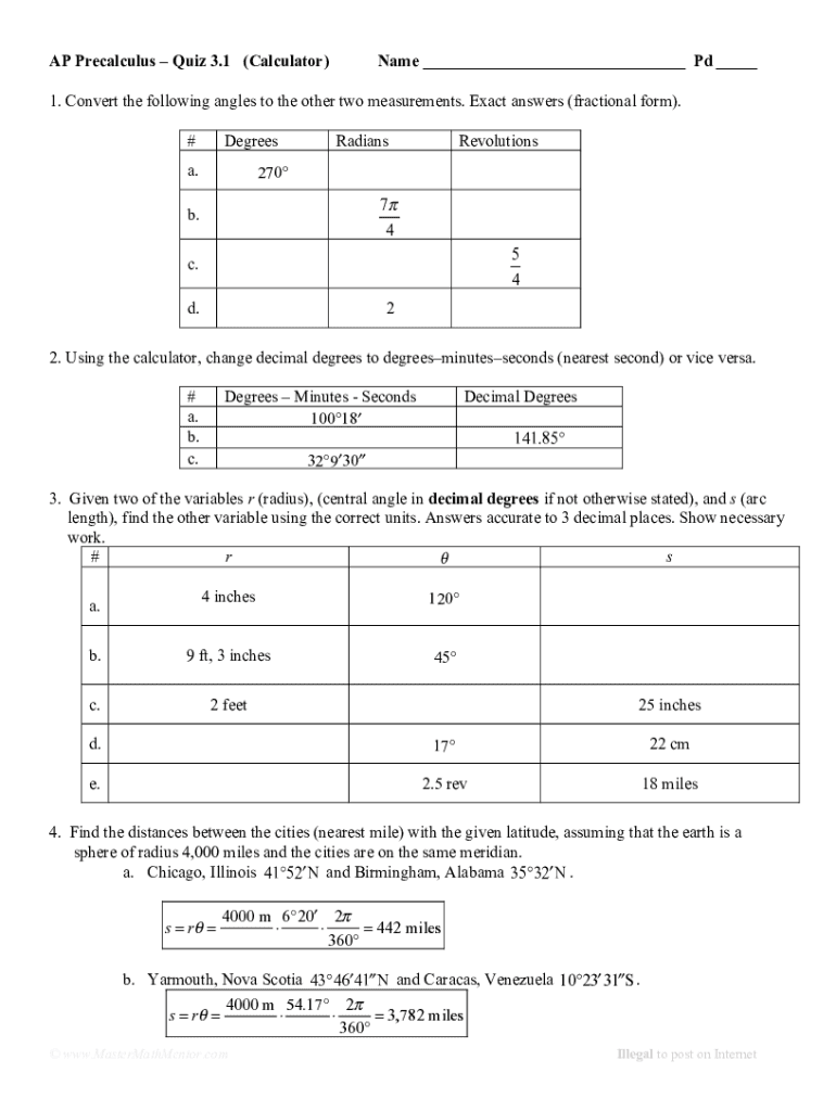 Get the free Quiz 3.1.pdf - Quiz Unit 3.1-3.5 Name: Keep in exact value...