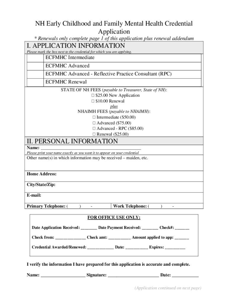 Get the free NH Early Childhood and Family Mental Health Credential Application