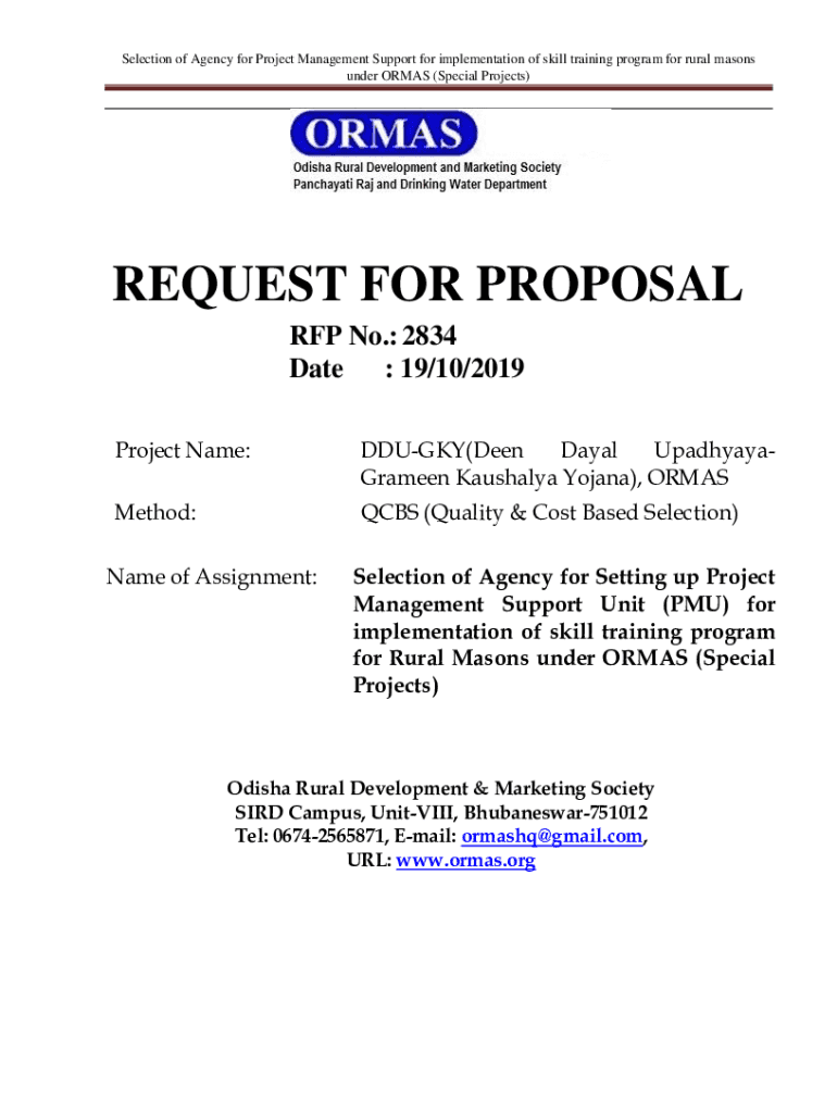 Selection of Agency for Project Management Support for implementation of skill training program for rural masons under ORMAS (Special Projects)REQUEST FOR PROPOSAL RFP No.: 2834 Date : 19/10/2019