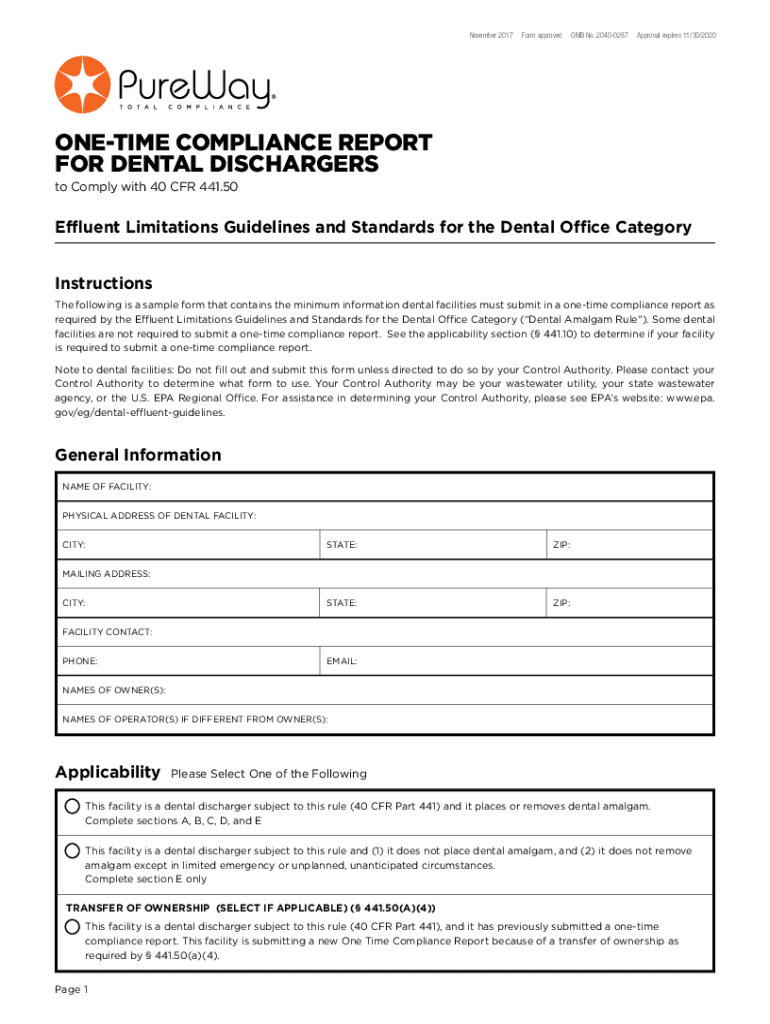 November 2017Form approved OMB No. 20400287Approval expires 11/30/2020ONETIME COMPLIANCE REPORT