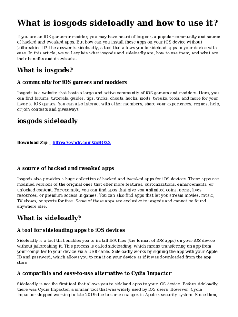 What is iosgods sideloadly and how to use it? If you are an iOS gamer or modder, you may have heard of iosgods, a popular community and source of hacked and tweaked apps. But how can you install these