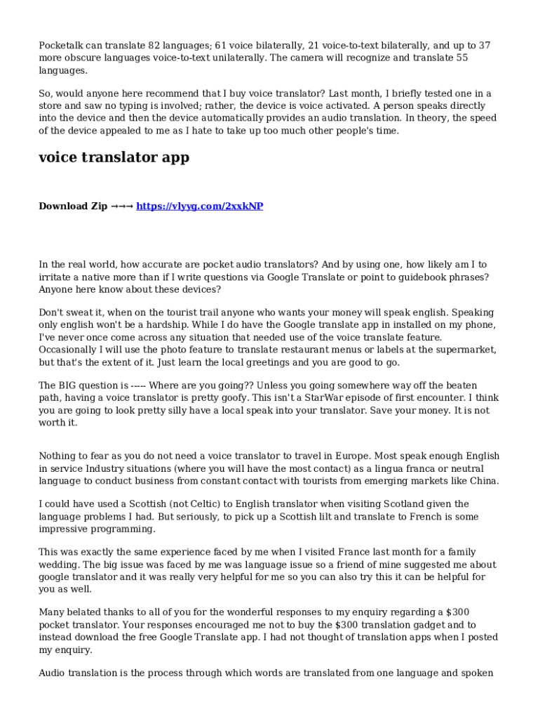 You may use pdfFiller's Gmail add-on to change, fill out, and eSign your pocketalk s two-way voice as well as other documents directly in your inbox by using the pdfFiller add-on for Gmail. pdfFiller for Gmail may be found on the Google Workspace Marketplace. Use the time you would have spent dealing with your papers and eSignatures for more vital tasks instead.