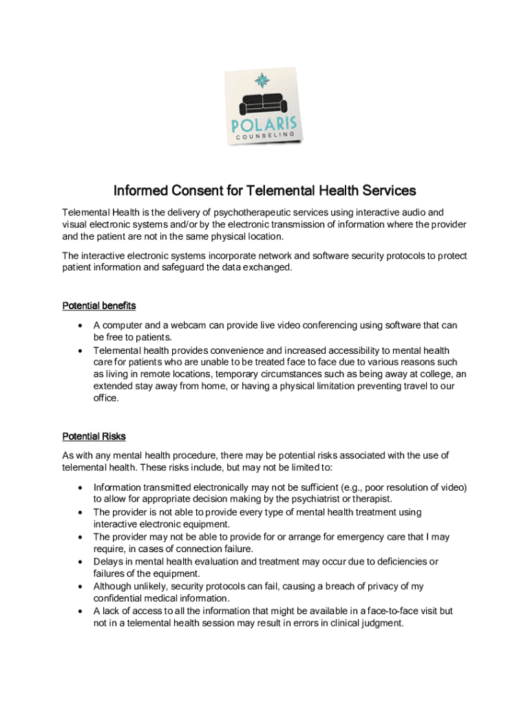 Get the free Patient Information and Informed Consent for Telemental Health ...