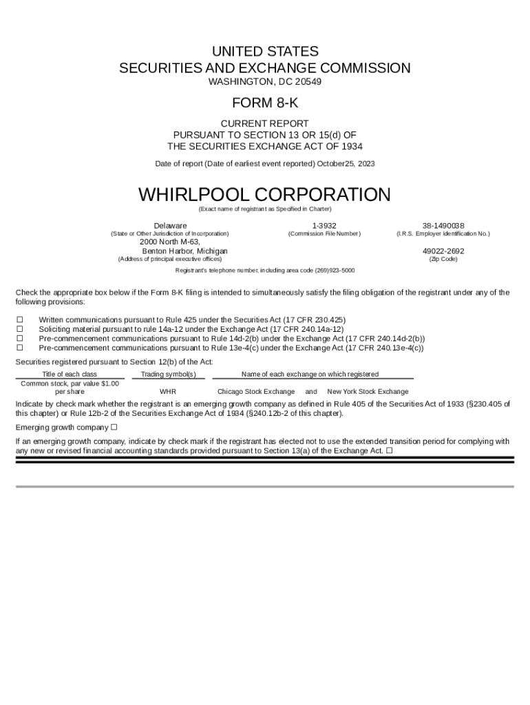 Instructions for the We routinely post important ination for investors on our website, whirlpoolcorp form