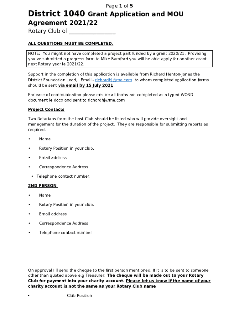 Template District Grant Application 2022-2023 Rotary Year instructions