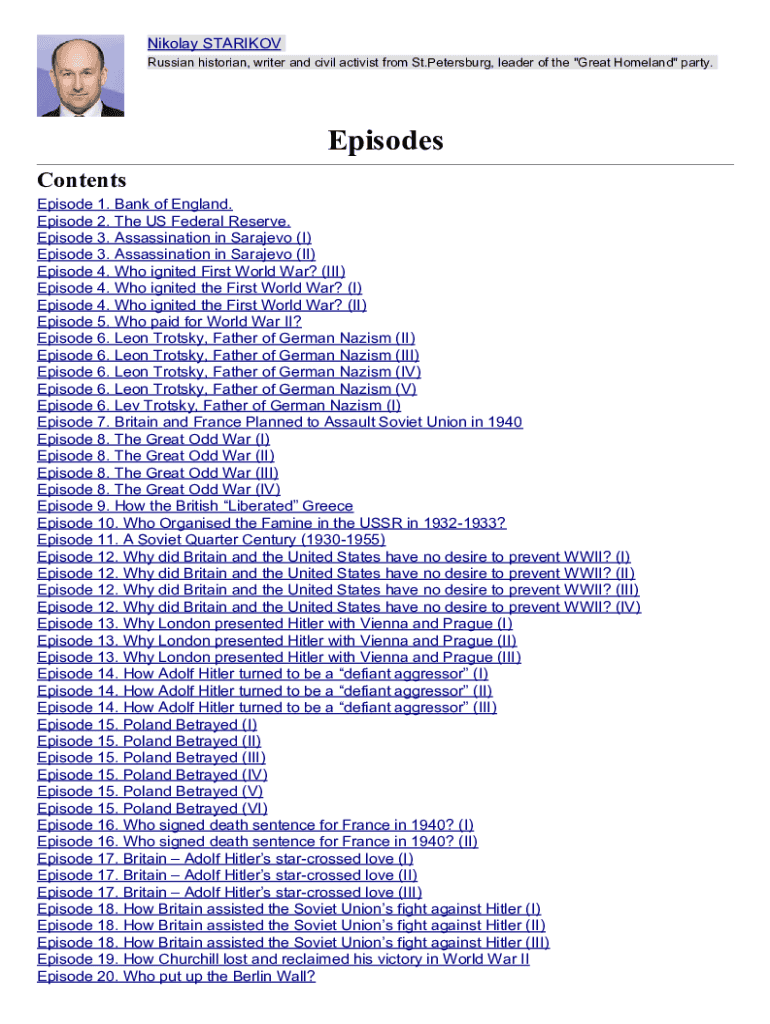 Fill out your nikolay starikov - episodes online with pdfFiller!