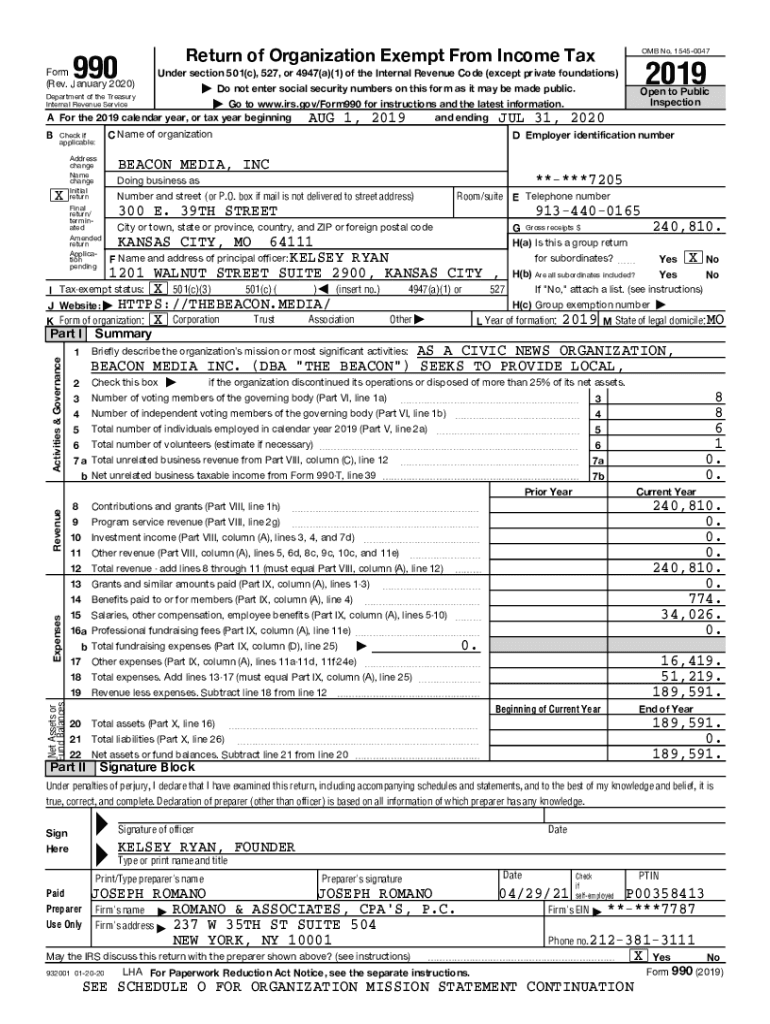 (Rev. January 2020)Return of Organization Exempt From Income TaxOMB No. 15450047| Do not enter social security numbers on this form as it may be made public.Open to Public