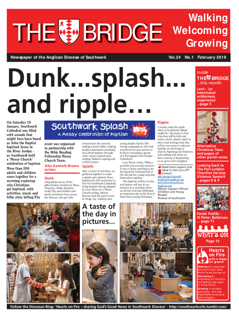 GrowingBRIDGENewspaper of the Anglican Diocese of SouthwarkVol.24 No.1 February 2019Dunk...splash...