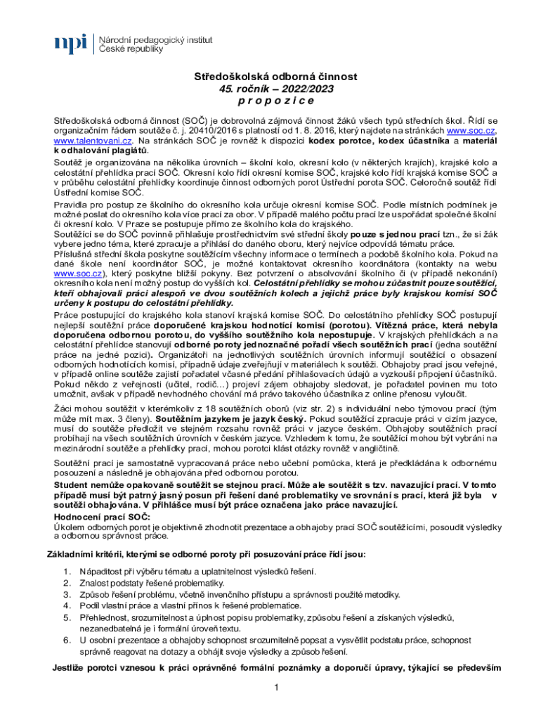 Stedokolsk odborn innost 45. ronk 2022/2023 propozice Stedokolsk odborn innost (SO) je dobrovoln zjmov innost k vech typ stednch kol. d se organizanm dem soute . j. 20410/2016 s platnost od 1. 8.