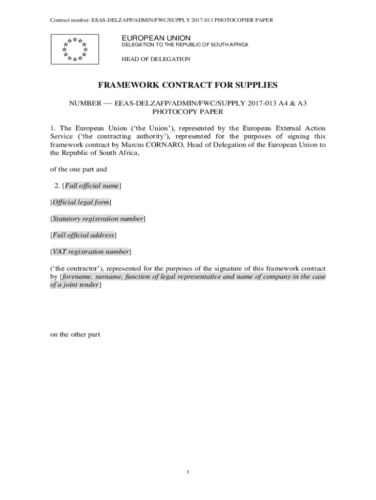 Get the free FRAMEWORK SUPPLY CONTRACT - EEAS