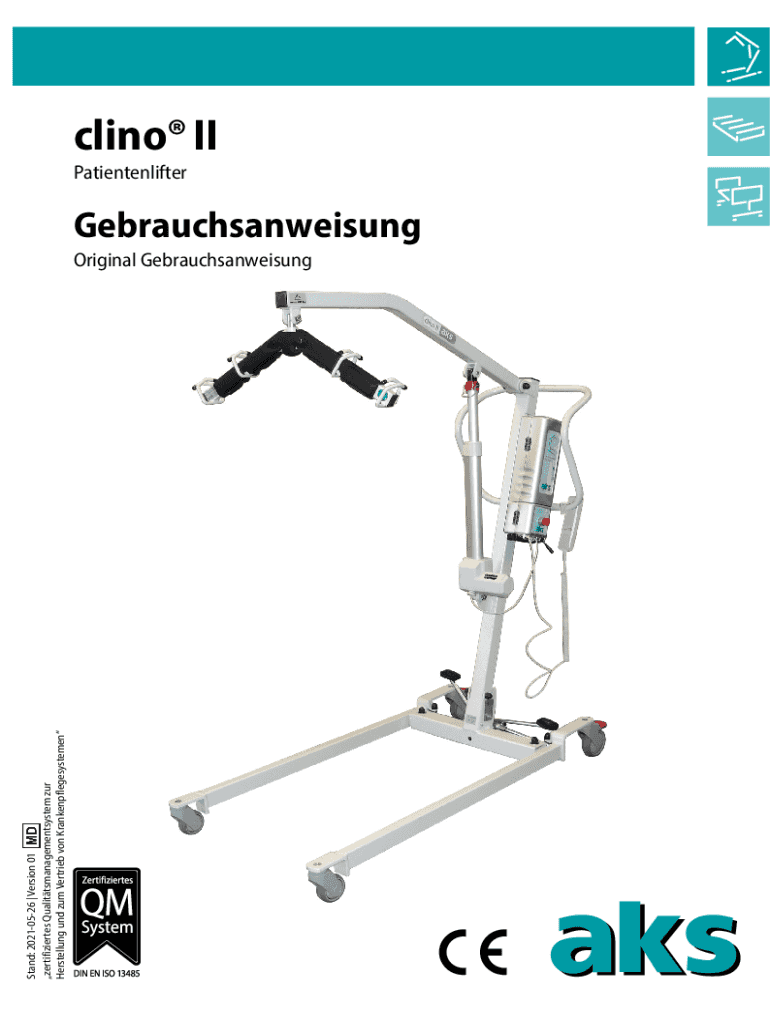 Stand: 20210526 | Version 01 zertifiziertes Qualittsmanagementsystem zur Herstellung und zum Vertrieb von KrankenpflegesystemenclinoIIPatientenlifterGebrauchsanweisungOriginal GebrauchsanweisungclinoII1