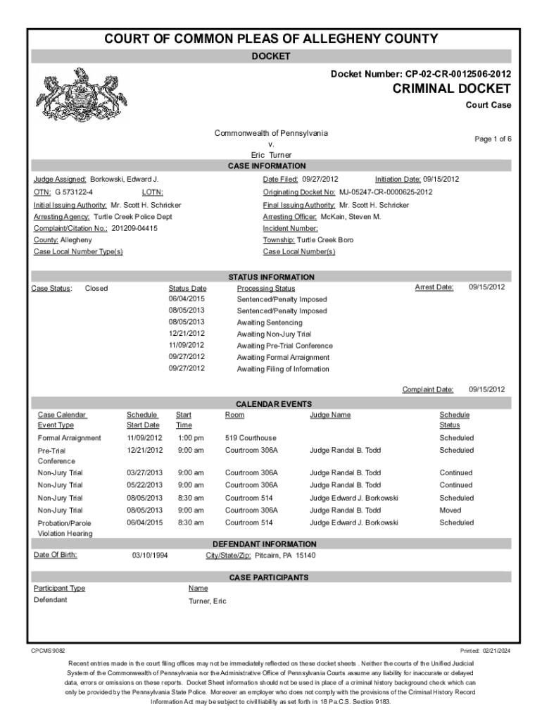 DOCKET Number: CP02CR00125062012CRIMINAL DOCKET