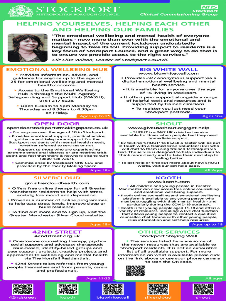 HELPING YOURSELVES, HELPING EACH OTHER AND HELPING OUR FAMILIES The emotional wellbeing and mental health of everyone matters now more than ever with the emotional and mental impact of the current