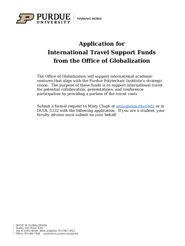 Application for International Travel Support Funds from the ... word template: frequently asked questions