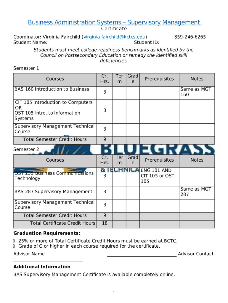 The Business Administration Systems - Supervisory Management is a writable document that can be filled-out and signed for specific purposes. Next, it is furnished to the exact addressee in order to provide certain details of any kinds. The completion and signing is available manually or using a suitable tool like PDFfiller. Such applications help to complete any PDF or Word file online. While doing that, you can edit its appearance depending on your needs and put an official legal digital signature. Once done, the user ought to send the Business Administration Systems - Supervisory Management to the recipient or several ones by mail and even fax. PDFfiller has got a feature and options that make your Word form printable. It provides a variety of settings when printing out. It does no matter how you will send a form - in hard copy or electronically - it will always look well-designed and clear. In order not to create a new editable template from the beginning again and again, make the original Word file as a template. After that, you will have an editable sample.