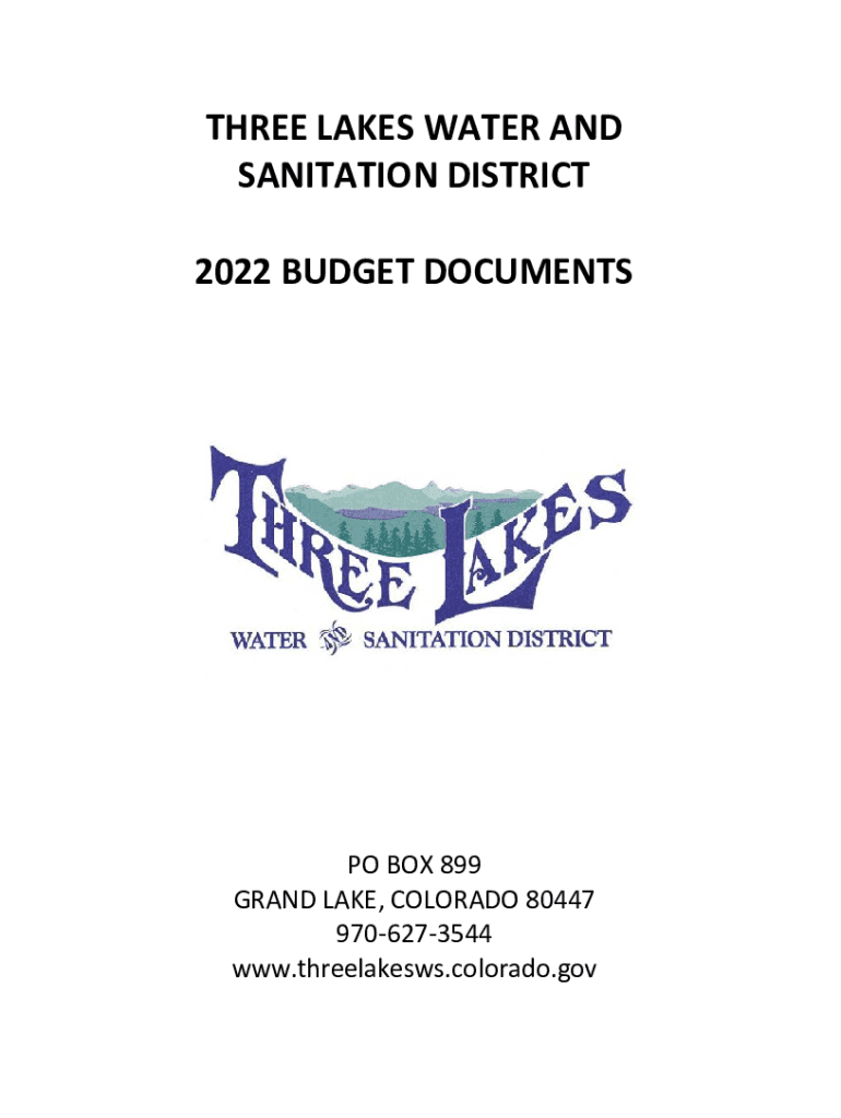 THREE LAKES WATER AND SANITATION DISTRICT 2022 BUDGET DOCUMENTSPO BOX 899 GRAND LAKE, COLORADO 80447 9706273544 www.threelakesws.colorado.govTHREE LAKES WATER AND SANITATION DISTRICT 1111 COUNTY ROAD