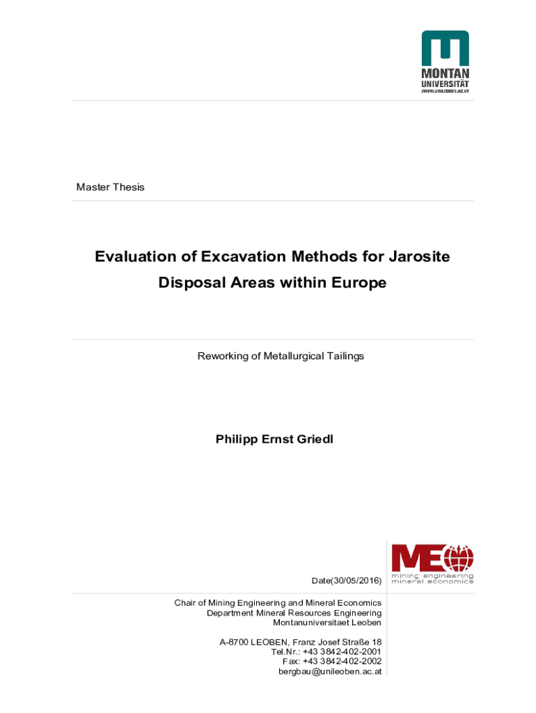 Master ThesisEvaluation of Excavation Methods for Jarosite Disposal Areas within EuropeReworking of Metallurgical TailingsPhilipp Ernst GriedlDate(30/05/2016) Chair of Mining Engineering and Mineral