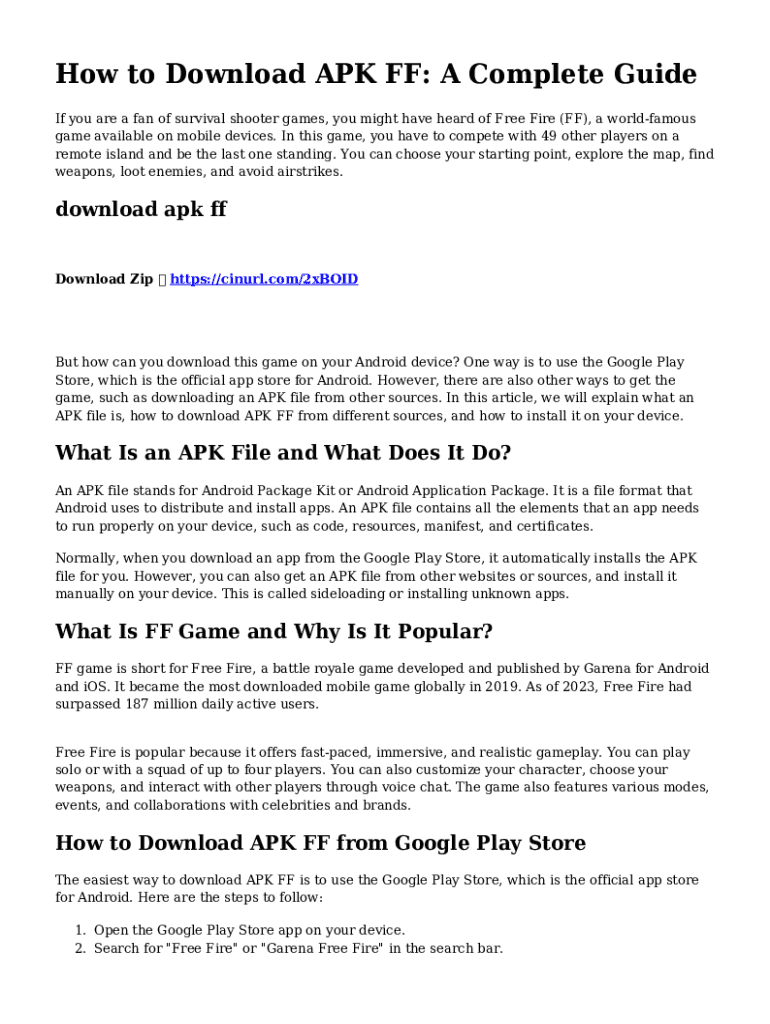 How to Download APK FF: A Complete Guide If you are a fan of survival shooter games, you might have heard of Free Fire (FF), a worldfamous game available on mobile devices. In this game, you have