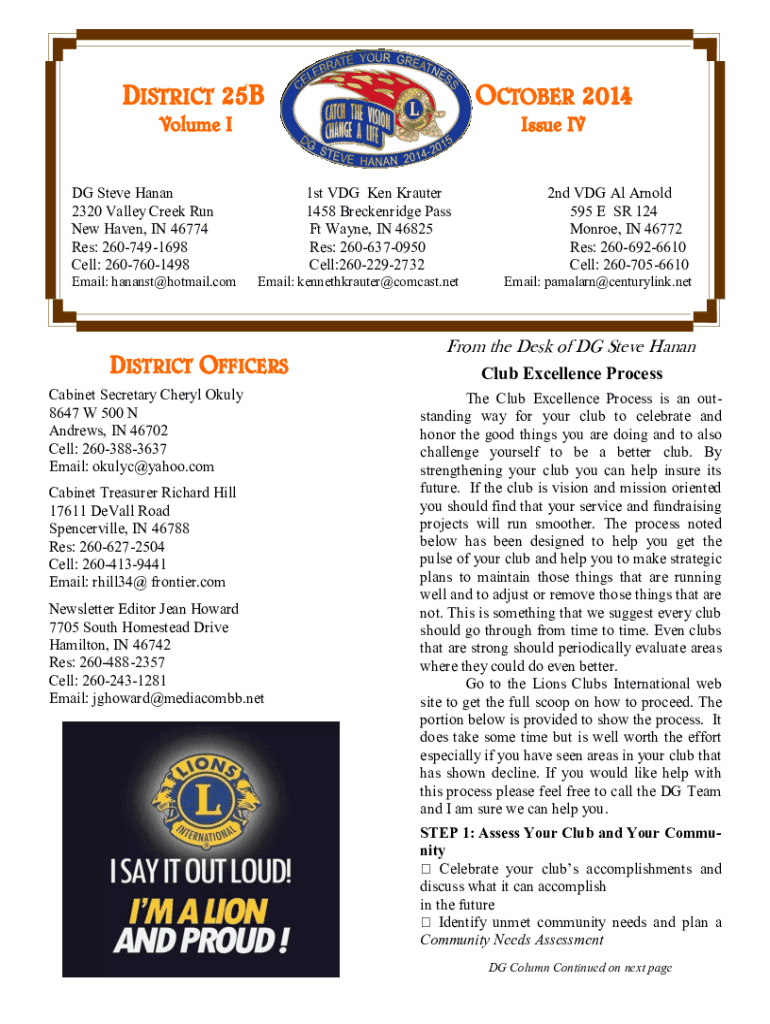 DISTRICT 25BOCTOBER 2014Volume Issue IDG Steve Hanna