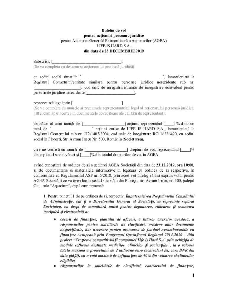 Get the free Buletin de vot pentru acionari persoane juridice pentru ... - Life is Hard