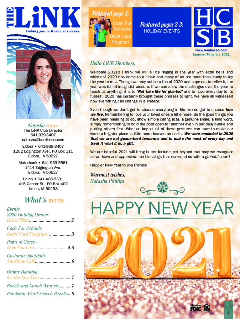 Cash For SchoolsLinking you to financial success.Debit Card ProgramFeatured pages 23: HOLIDAY EVENTSLinking you to finawww.hardincsb.com January/Feburary 2021THELiNKLiNTHETHELiNKFeatured page 3:Hello