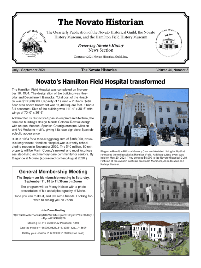 The Novato Historian The Quarterly Publication of the Novato Historical Guild, the Novato History Museum, and the Hamilton Field History Museum Preserving Novatos HistoryNews SectionContents 2021