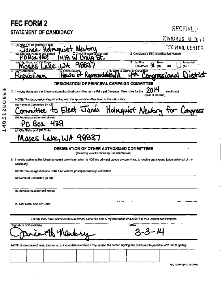 FEC FORM 2RECEIVEDSTATEMENT OF CANDIDACY2fl!\'iHAR20 AH 111: I