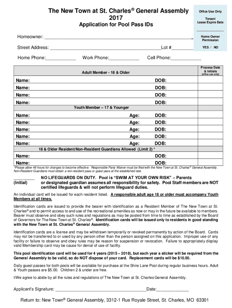 Application for Pool Pass Office Use Only