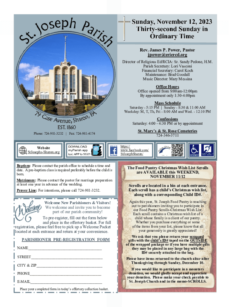 Rev. James P. Power, Pastor jpower@eriercd.org Director of Religious Ed/RCIA: Sr. Sandy Pedone, H.M. Parish Secretary: Lori Vasconi Financial Secretary: Carol Koch Maintenance: Brad Goodall Music