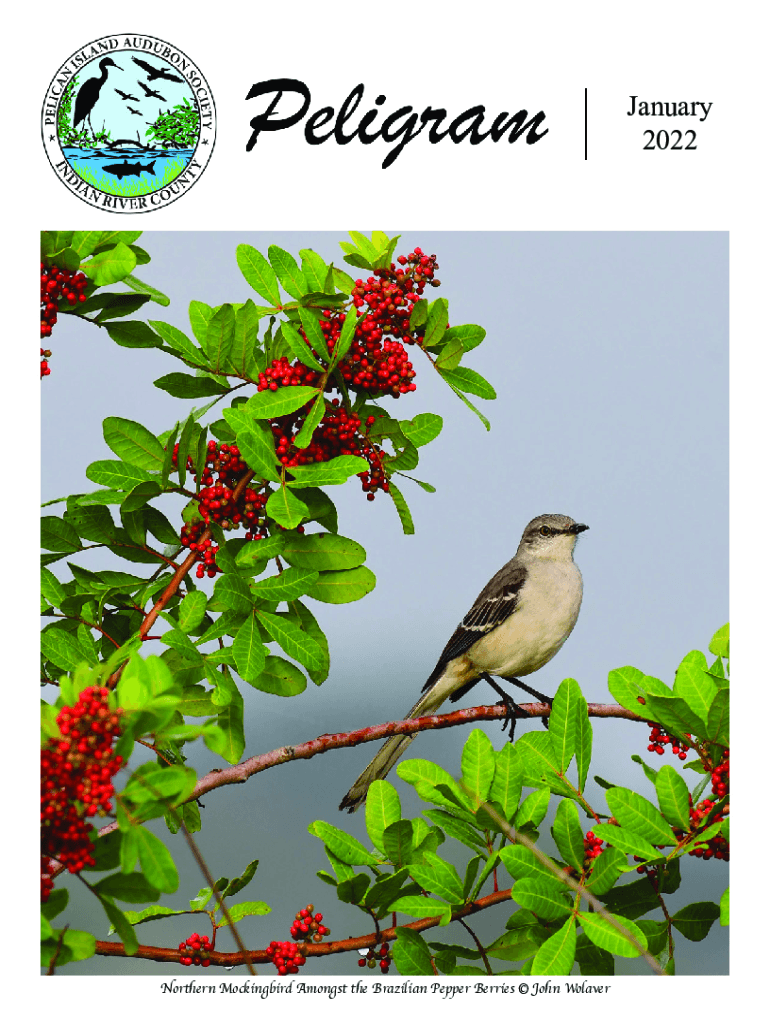 January 2022Northern Mockingbird Amongst the Brazilian Pepper Berries John WolaverOn the cover Brazilian Pepper Thrives, but fewer of our Native Birds do by Juanita Baker, Ph.D. Brazilian pepper is
