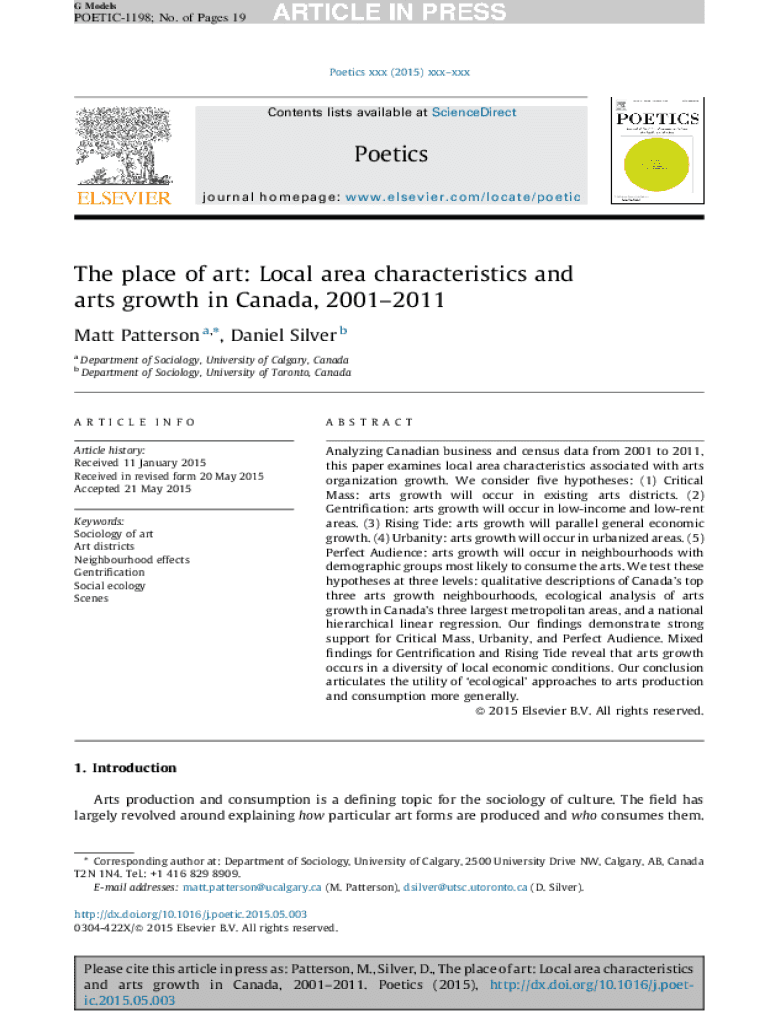 G ModelsPOETIC1198; No. of Pages 19Poetics xxx (2015) xxxxxxContents lists available at ScienceDirectPoetics j ourn al h omepa ge : www.elsevier.com/locate/p oeticThe place of art: Local area characteristics