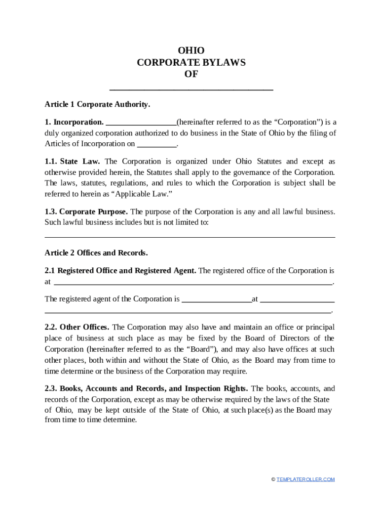 What is Ohio Corporate Bylaws Template. TemplateRoller.com Form?