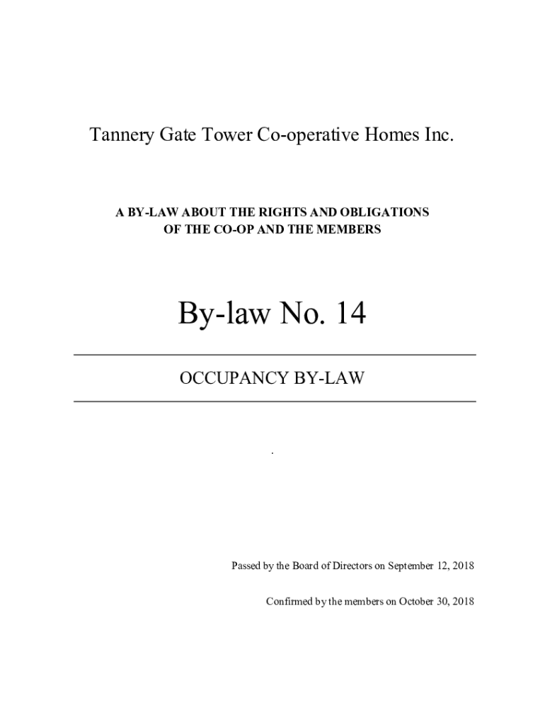 Tannery Gate Tower Cooperative Homes Inc.A BYLAW ABOUT THE RIGHTS AND OBLIGATIONS