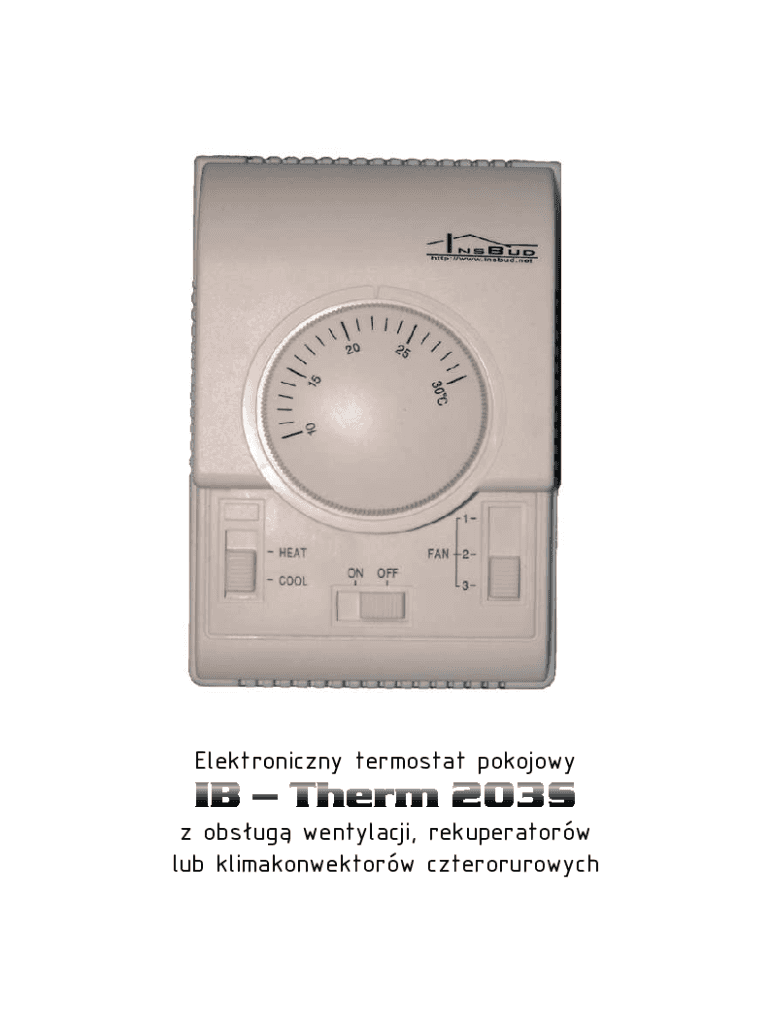 Elektroniczny termostat pokojowy z obsug wentylacji, rekuperatorw lub klimakonwektorw czterorurowychPRODUKT POSIADA ZNAK I ZOSTA WYPRODUKOWANY ZGODNIE Z NORM ISO 9001INSBUD ul. Niepodlegoci 16a 32300