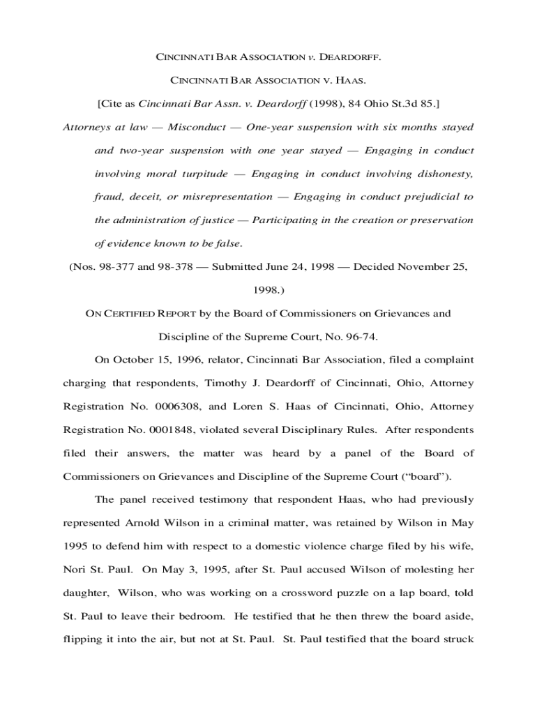 Get the free Cincinnati Bar Assn. v. Deardorff, 98-377 - Ohio - Case Law
