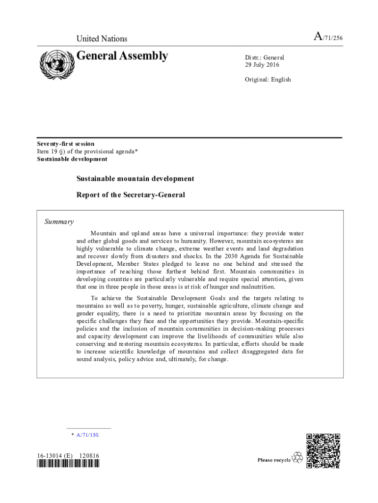 A/71/256United NationsGeneral AssemblyDistr.: General 29 July 2016 Original: EnglishSeventyfirst session Item 19 (j) of the provisional agenda* Sustainable developmentSustainable mountain development