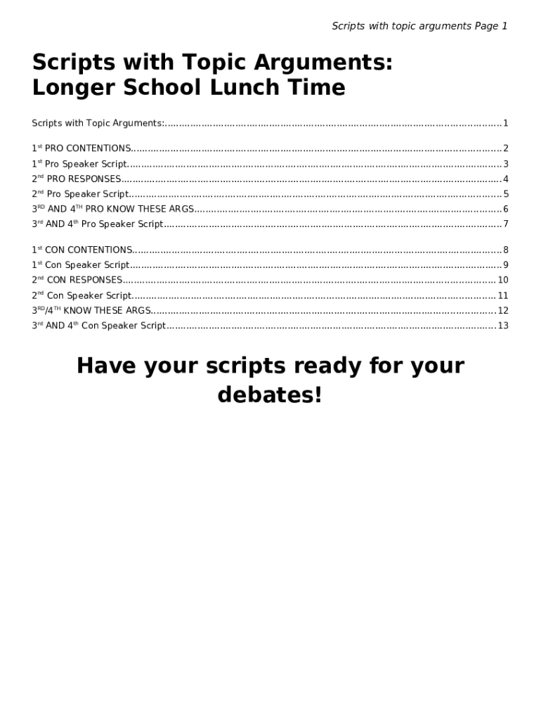 THE TOPIC: Schools should increase time for lunch. word template: frequently asked questions