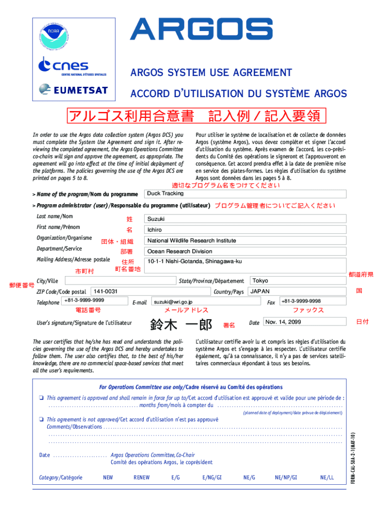 EDEPRCUSENATIONAL OC EA NMOSPH D AT ER AN ICTRATION NIS MI ADICARTMEO NT OF CMMargos system use agreement accord dutilisation du systme argosIn order to use the Argos data collection system (Argos