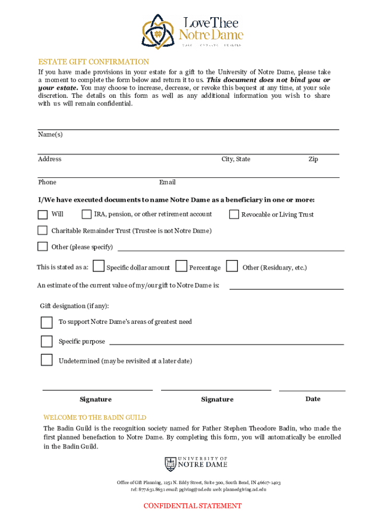 Fill out your estate gift confirmation form online with pdfFiller!