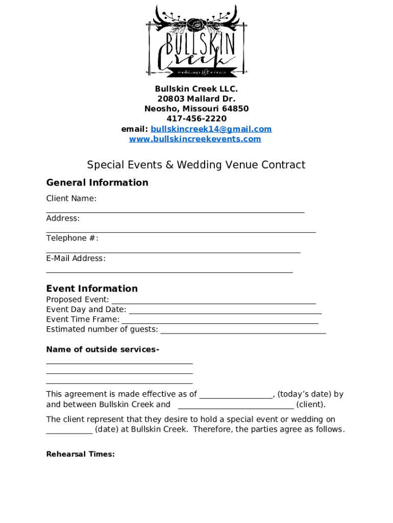 Bullskin CreekWeddings & Event Venue in Neosho, MO template instructions