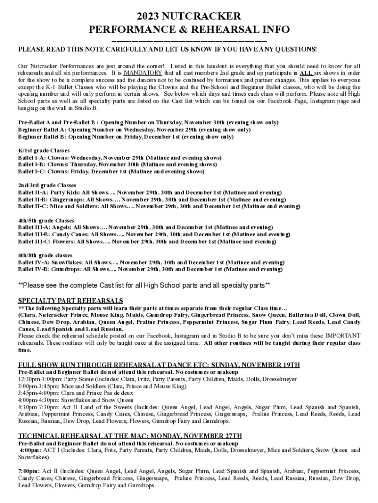 Our Nutcracker Performances are just around the corner! Listed in this handout